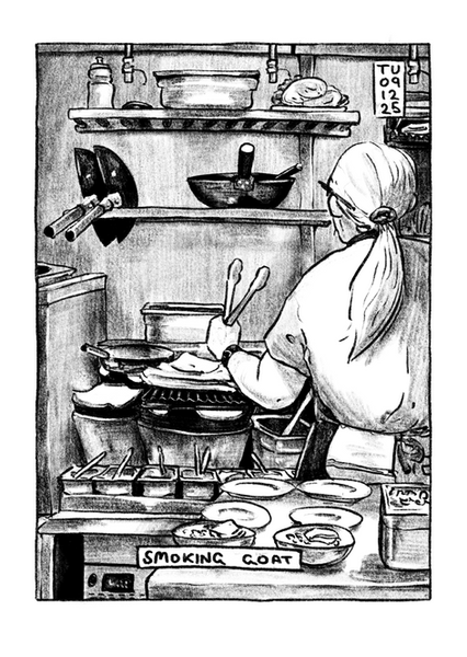 "We're running a feature on Smoking Goat in Shoreditch for our next issue. We need a double page spread: one large image of the kitchen and their open fire set up, and two spot illustrations of the food.